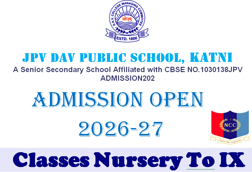 JPV DAV PUBLIC SCHOOL Near F.C.I. Godown, Pureni, Post Chaka, Katni, Madhya Pradesh - 483501 Contact : +91 9425163445, 07622-240812, 240741 E-Mail : [email protected] Website : www.jpvdavps.ac.in